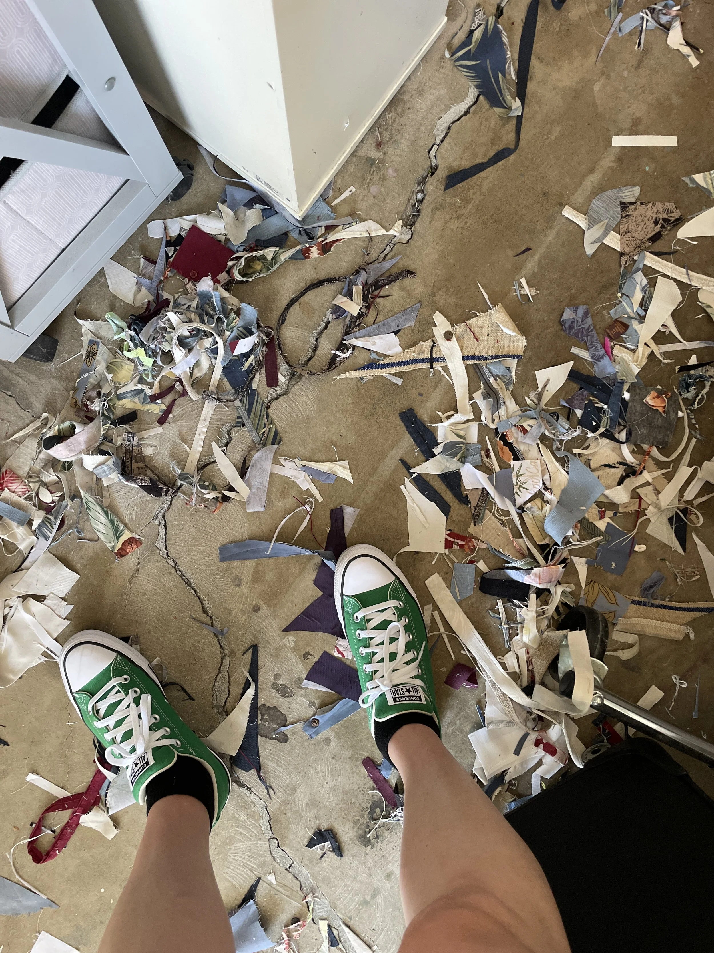 I chose the sections of clothing that I found visually dynamic and cut strategically, creating remnants that were also of useable size for further projects (and limiting landfill waste).